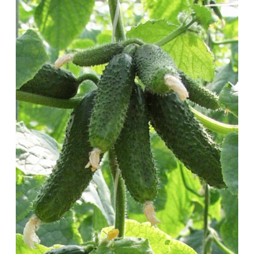 Найбільш ранньостиглий партенокарпічний гібрид огірка типу Амур F1 для вирощування у відкритому ґрунті, а також в плівкових і скляних теплицях. Рослина потужна, відкрита, формує по 6 і більше плодів в одному вузлі. Плоди великогорбкуваті, циліндричної форми, однорідні, зеленого кольору, не переростають і не жовтіють. М'якоть щільна, без гіркоти, шкірка ніжна, транспортабельність відмінна. Відрізняється високою товарністю плодів, відмінними смаковими і засолювальними якостями. Прекрасно підходить для вирощування на пікулі. Стійкий до повітряної засухи, високих температур, вірусу огіркової мозаїки, борошнистої роси, толерантний до переноспорозу. Добре переносить умови недостатнього освітлення, що робить його ідеальним для вирощування в літньо-осінній період в другому звороті.